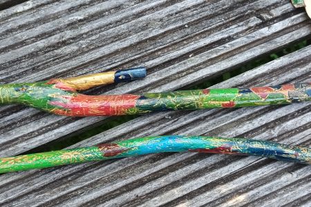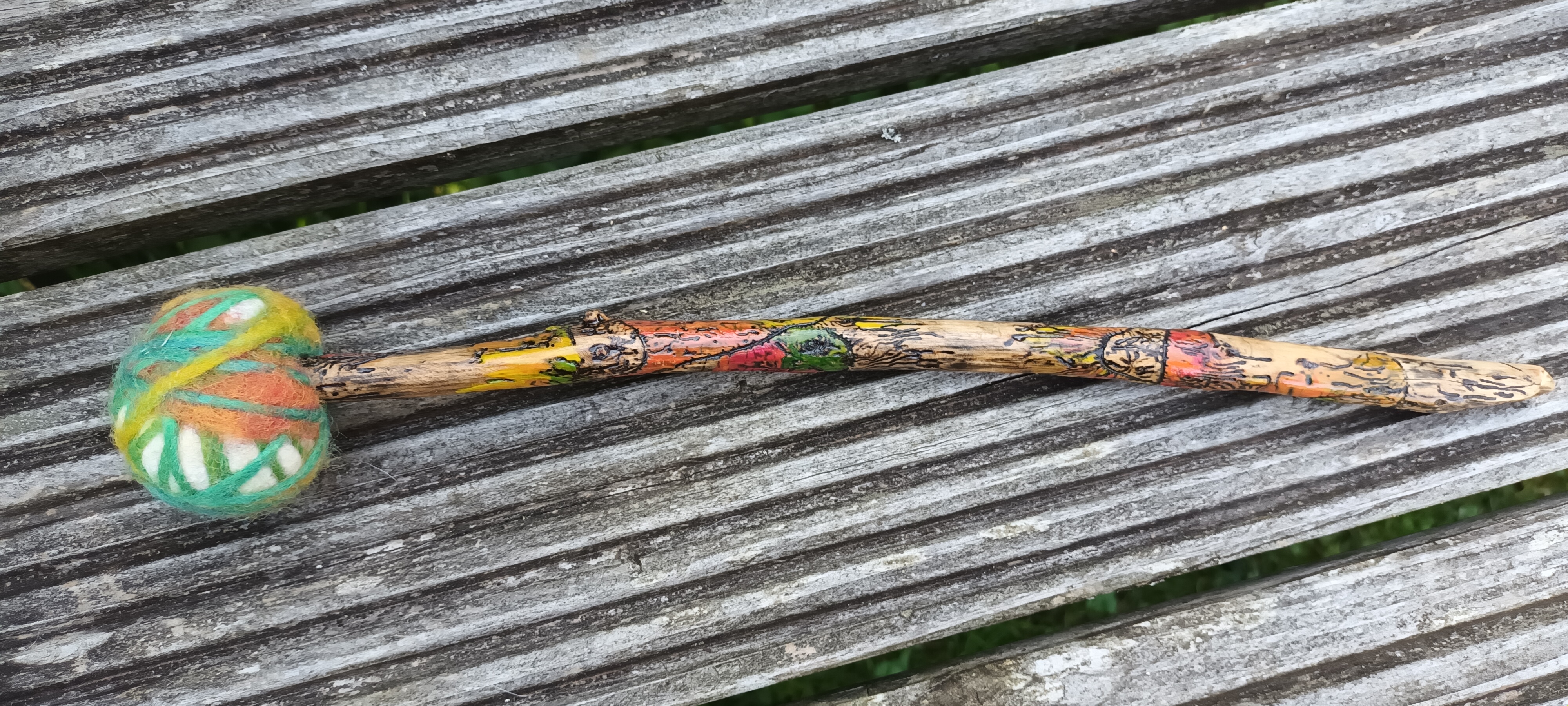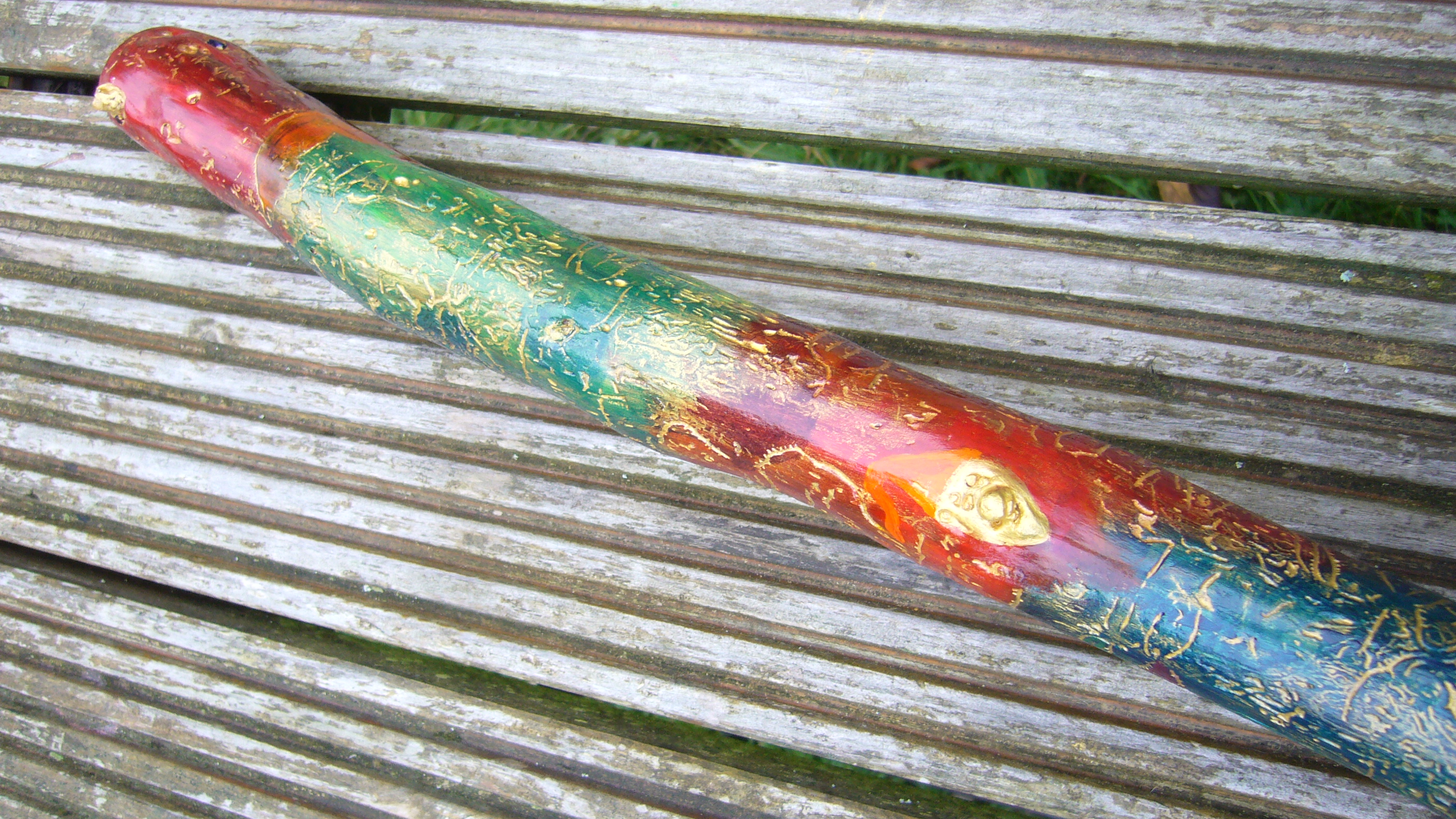 Ich staune oft, mit welcher Zielsicherheit die Kunden ihre „Rohlinge“ auswählen, denn mit dem Pinsel kommt nur das zum Vorschein, was ohnehin vorhanden ist. Die mediale Botschaft des Stabes an seinen Eigentümer, enthält zusätzliche Hinweise auf seine Kräfte, die sich hierin vereinen oder mit ihm zusammen ausgelebt werden wollen.