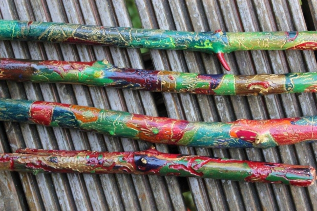 Von meinen Ausflügen in den Wald brachte ich mir wunderschön gezeichnete Hölzer mit, um sie als Rosenstab zu verwenden.